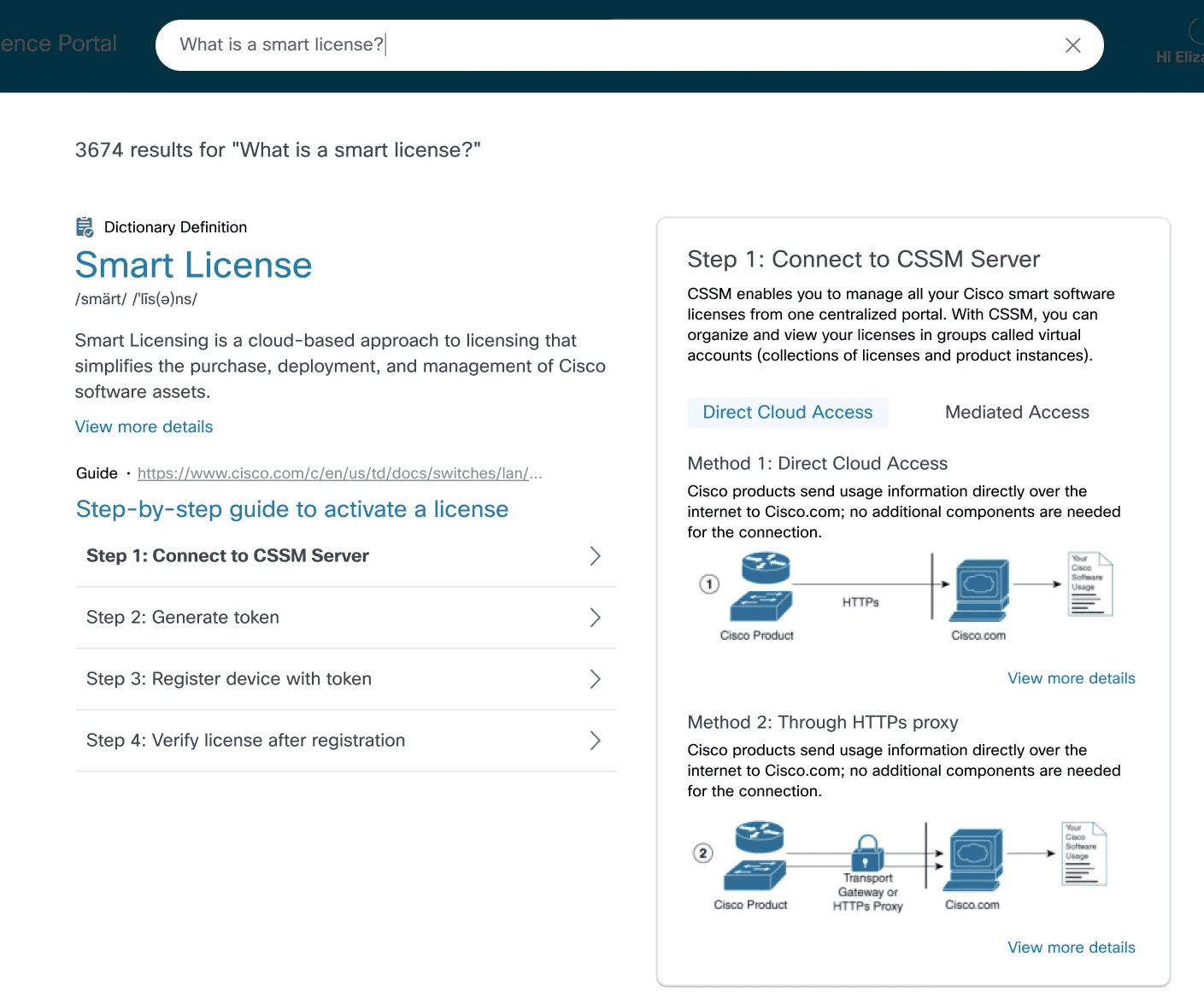 Difficulty finding information on smart licenses users have activated
