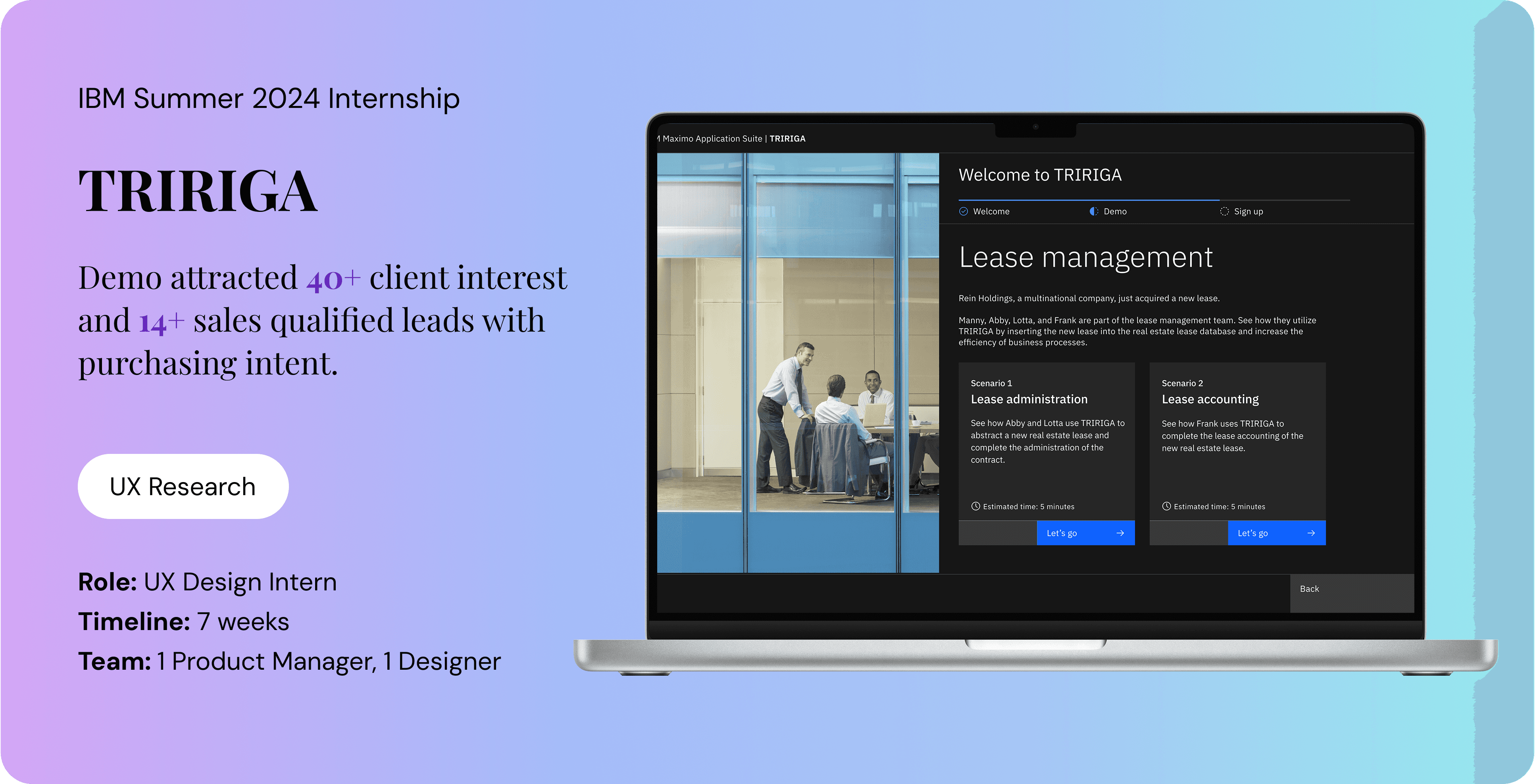 Our goal is to build a demo for the Lease Administrator and Lease Accountant that showcases the product's value